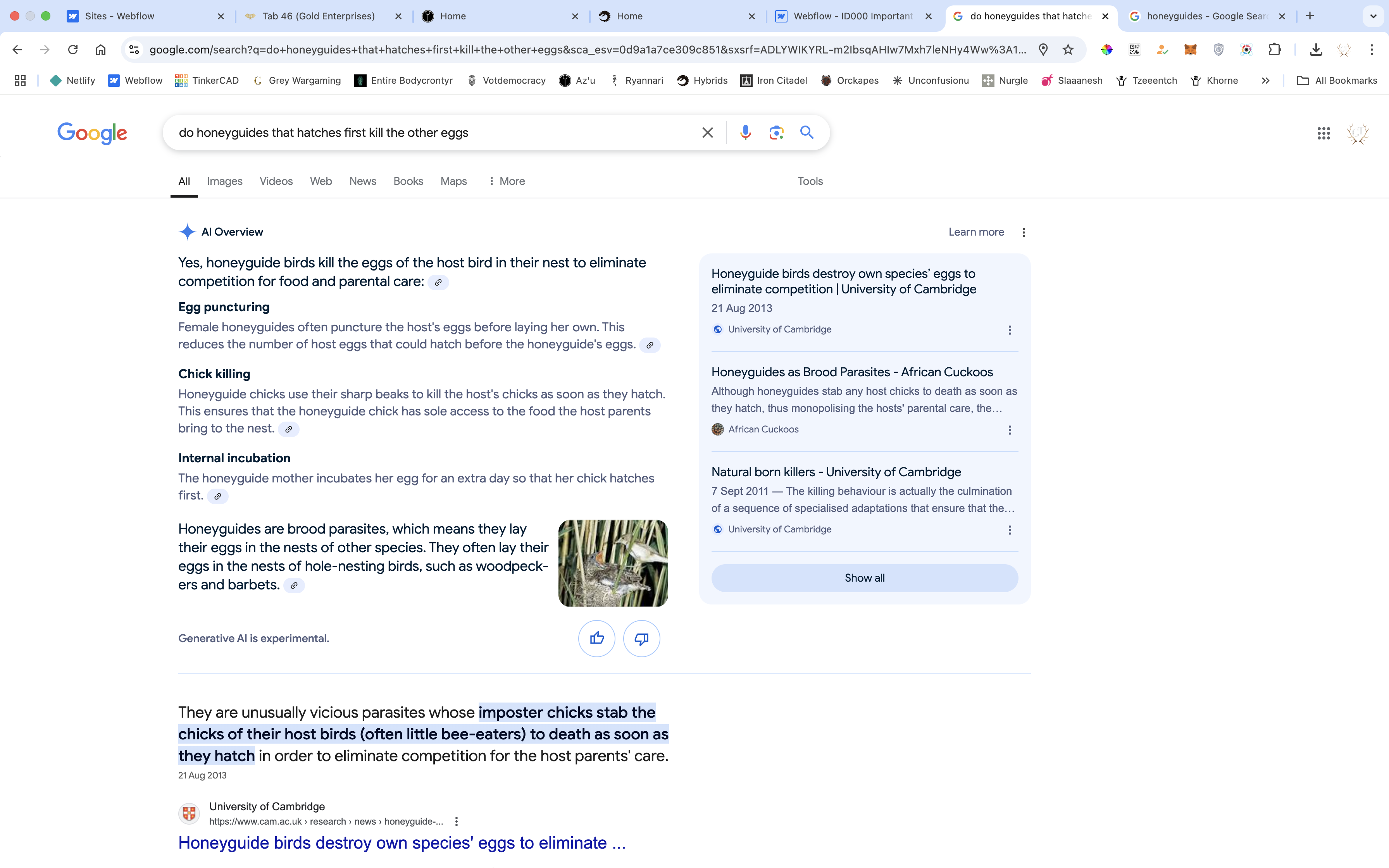 The Honeyguide that hatches first kills the other eggs