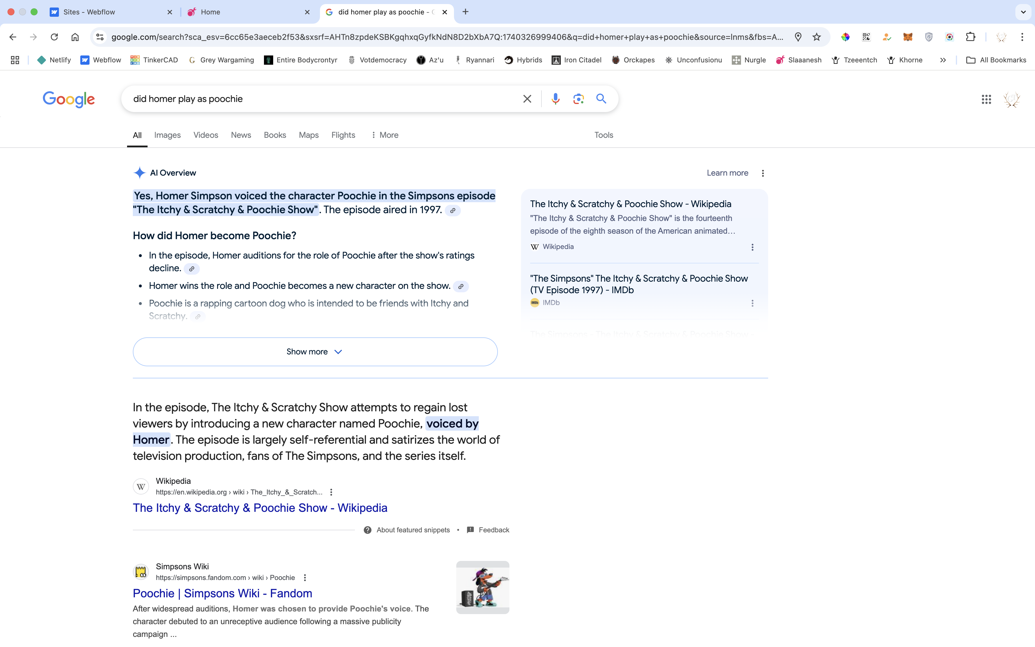 Homer does the voice for itchy & scratchy & poochie show