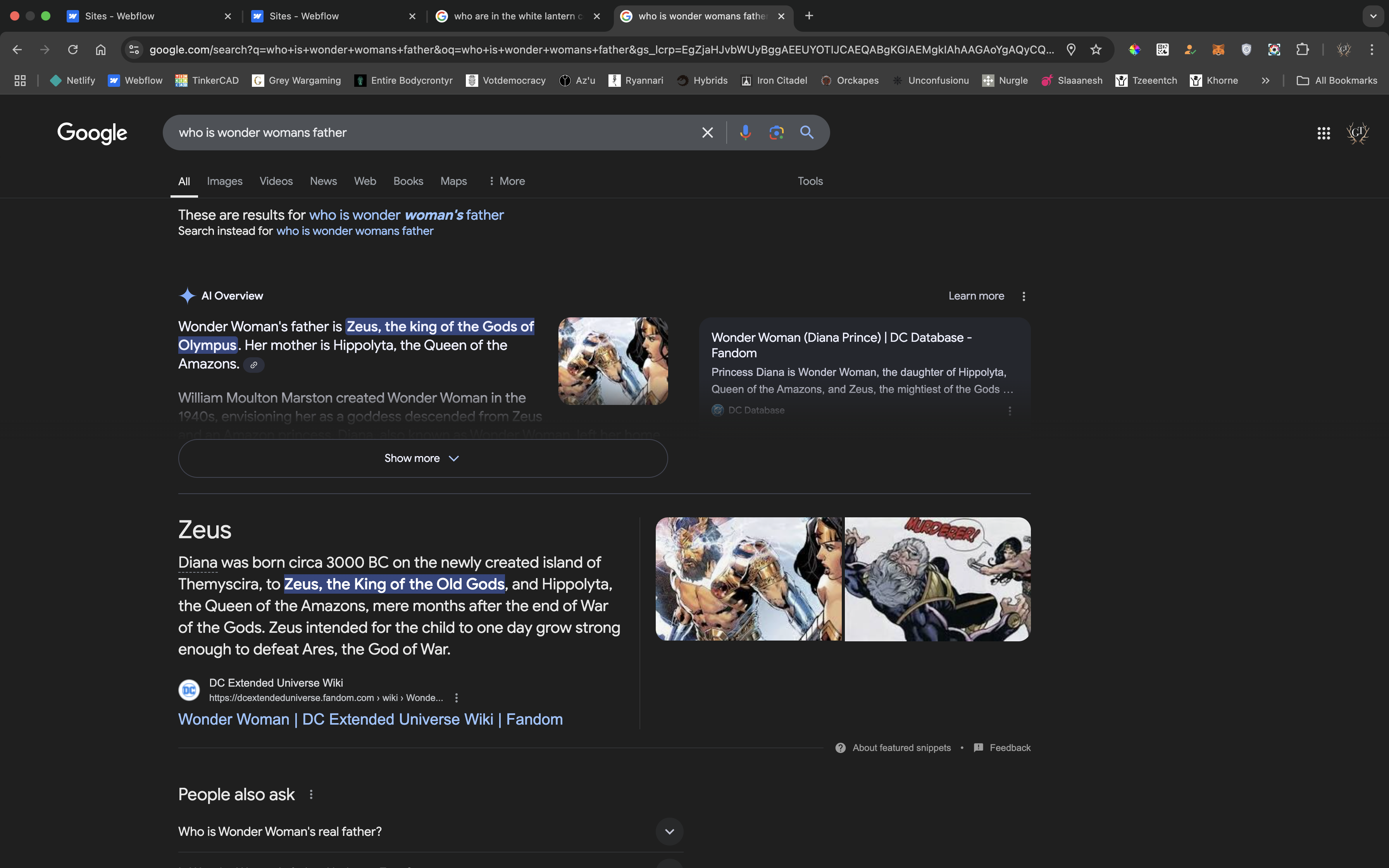 Zeus is father of Wonder Woman one of the White Lanterns